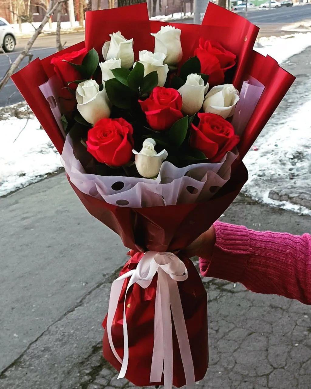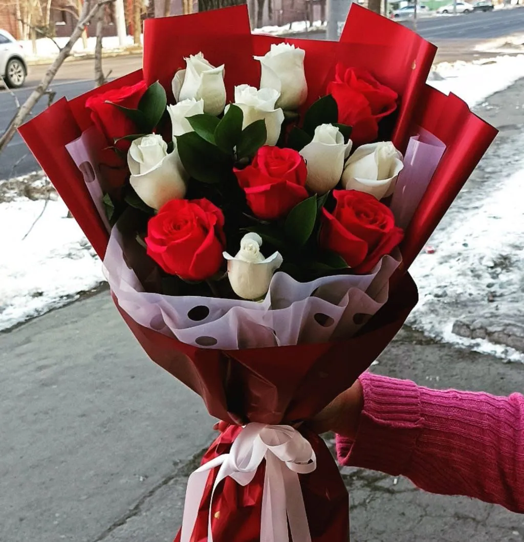 Букеты из красных и белых роз