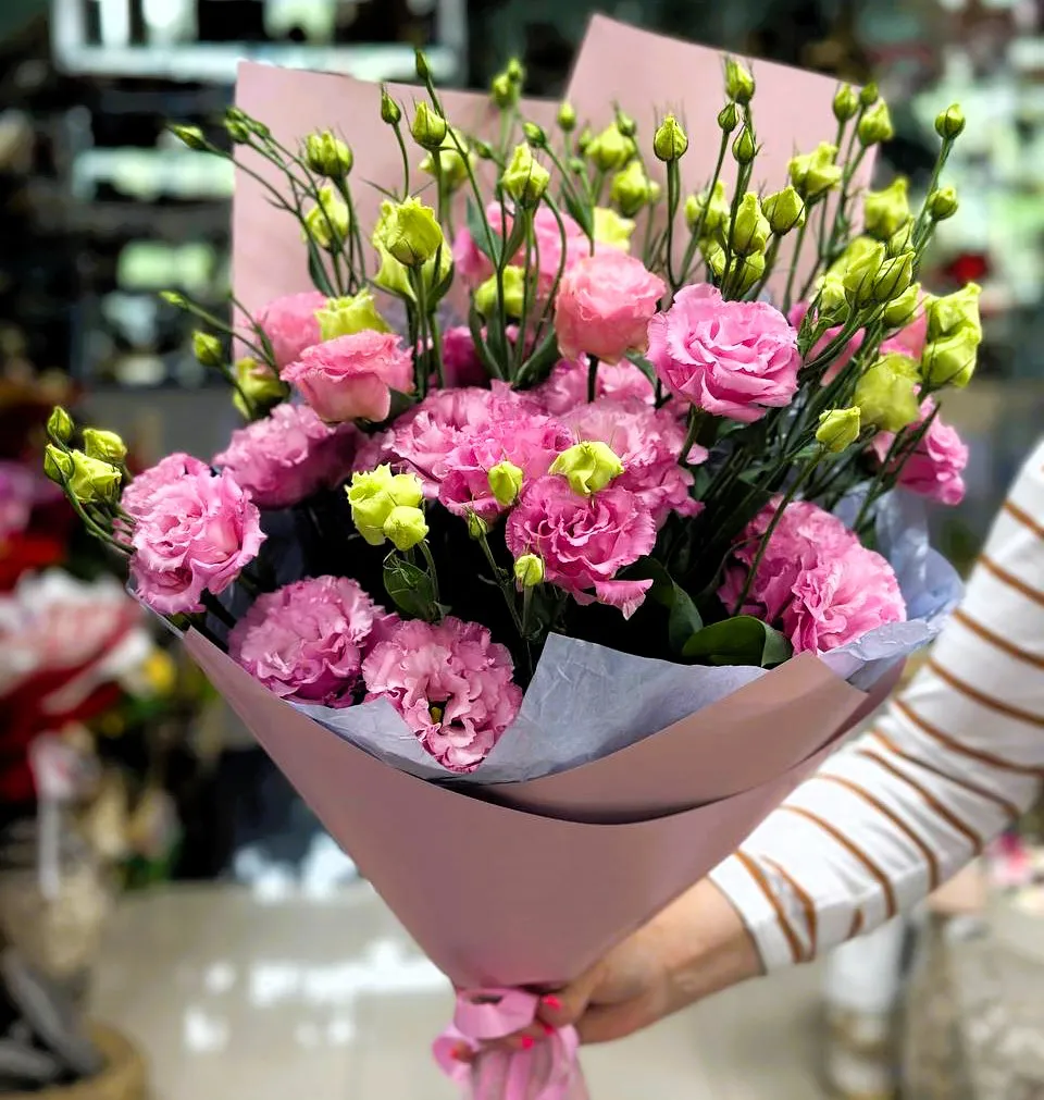 Букет из розовых эустом — это настоящая симфония нежности и красоты.