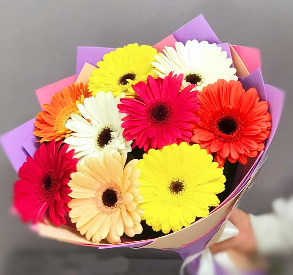 • Премиум - гербера - 9 шт., упаковка, лента