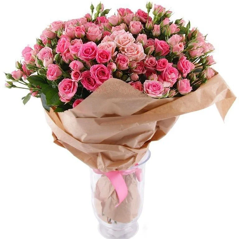 • Средний - роза кустовая - 9 шт., упаковка, лента