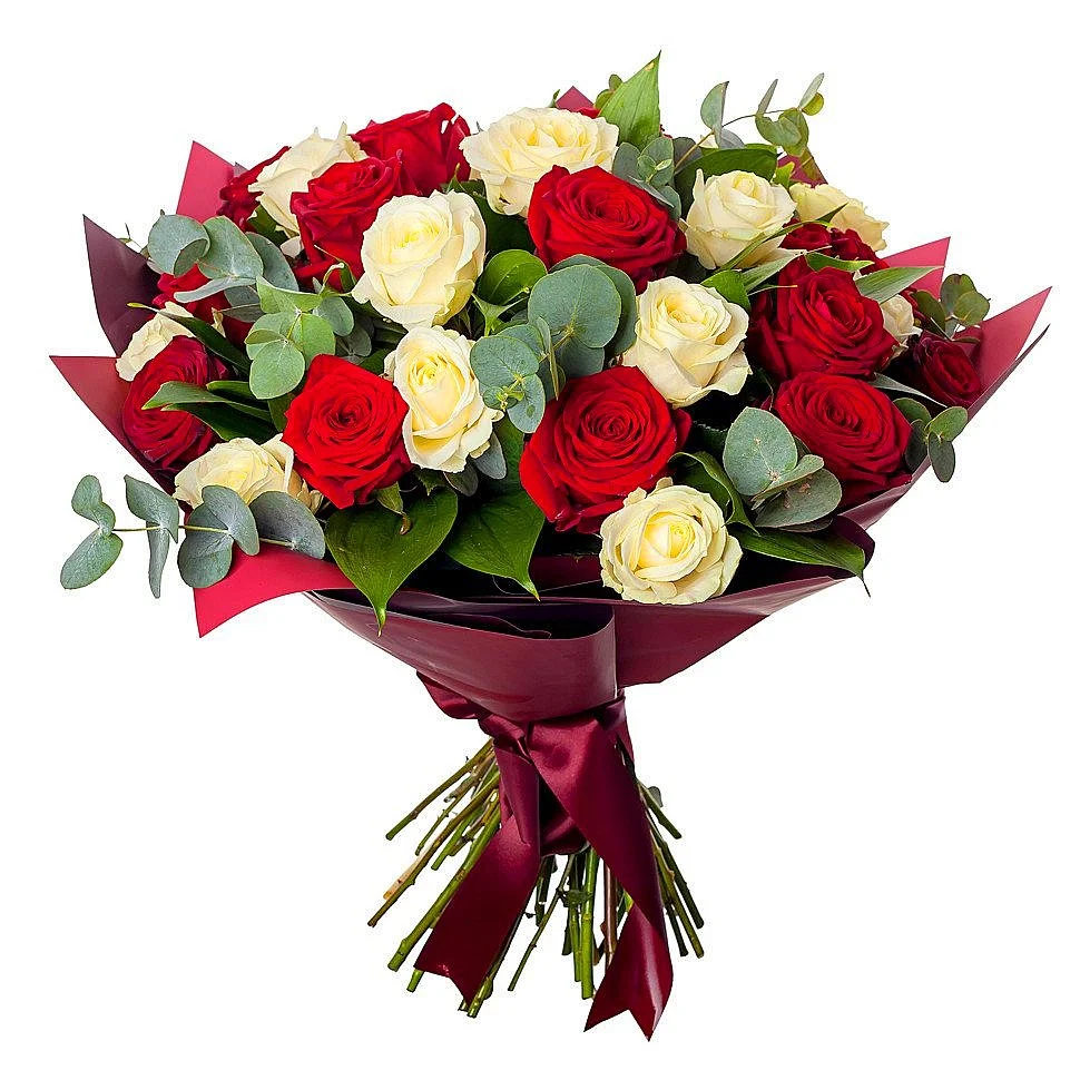 Букеты из красных и белых роз