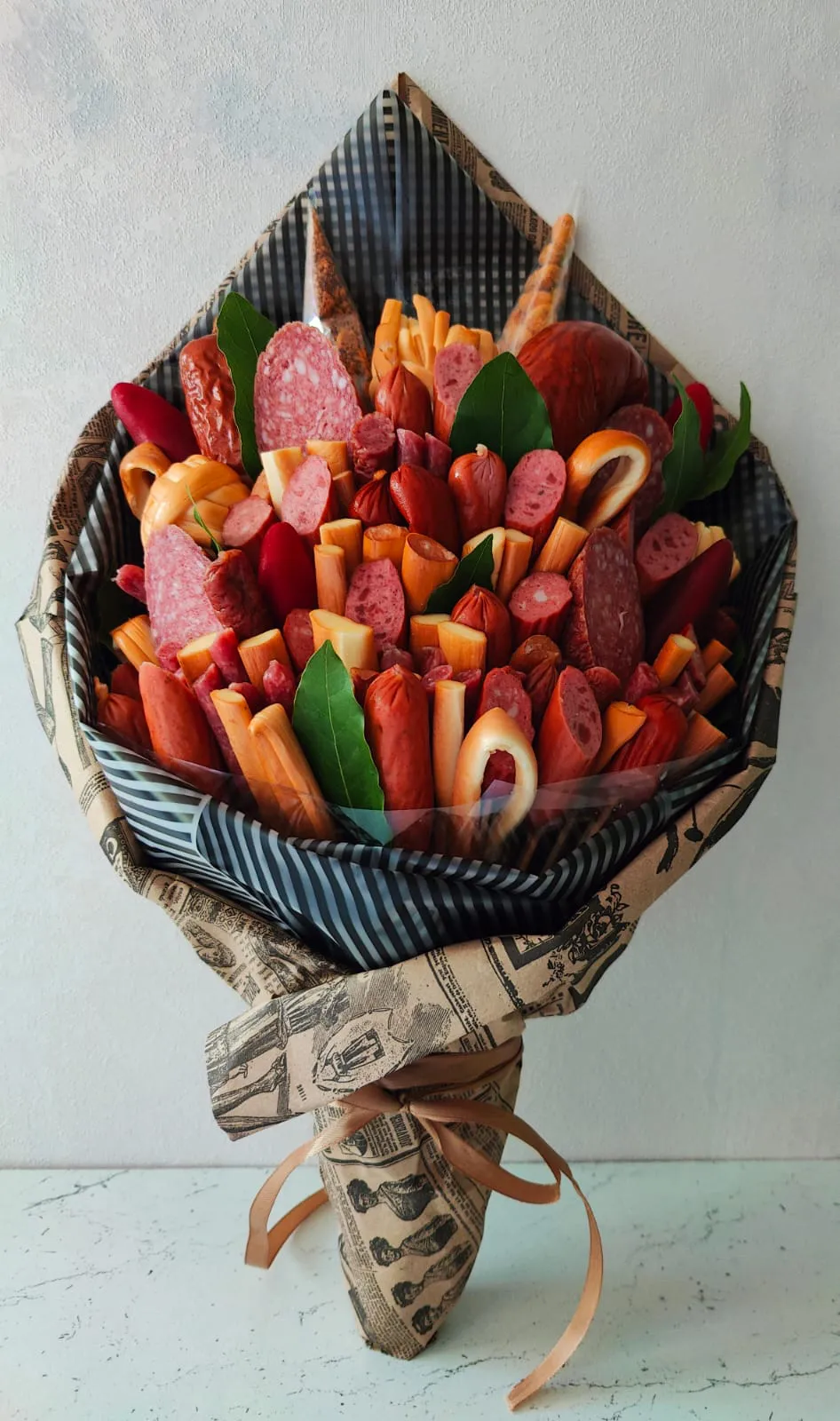 Съедобный букет из колбасок — это кулинарный шедевр, который несет в себе не только гастрономическое удовольствие, но и эстетическую привлекательность. Он удивит и порадует ваших гостей своим оригинальным дизайном и аппетитным наполнением.
