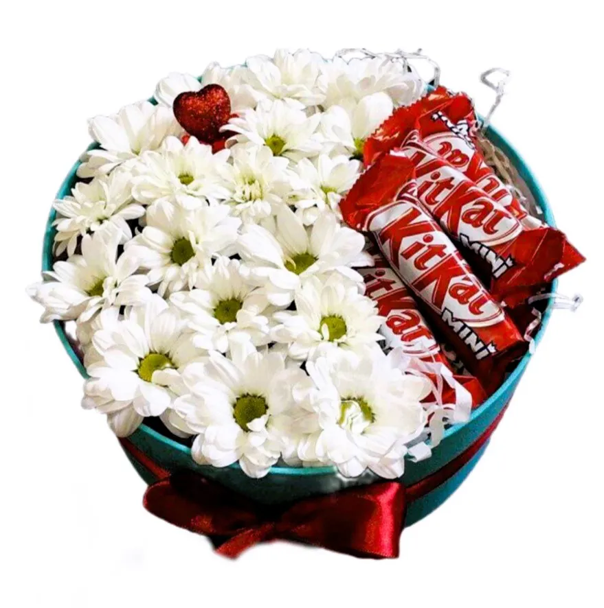 Коробка хризантем с шоколадом Сладкие ромашки