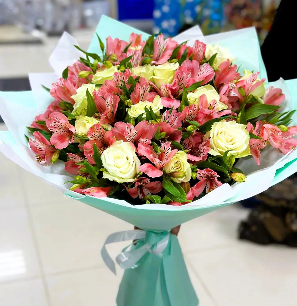 Не забудьте добавить к букету открытку с теплыми словами, чтобы сделать этот подарок ещё более персонализированным и запоминающимся. Букет из роз и альстромерий — это выбор тех, кто ценит красоту и хочет делиться ей с окружающими.
